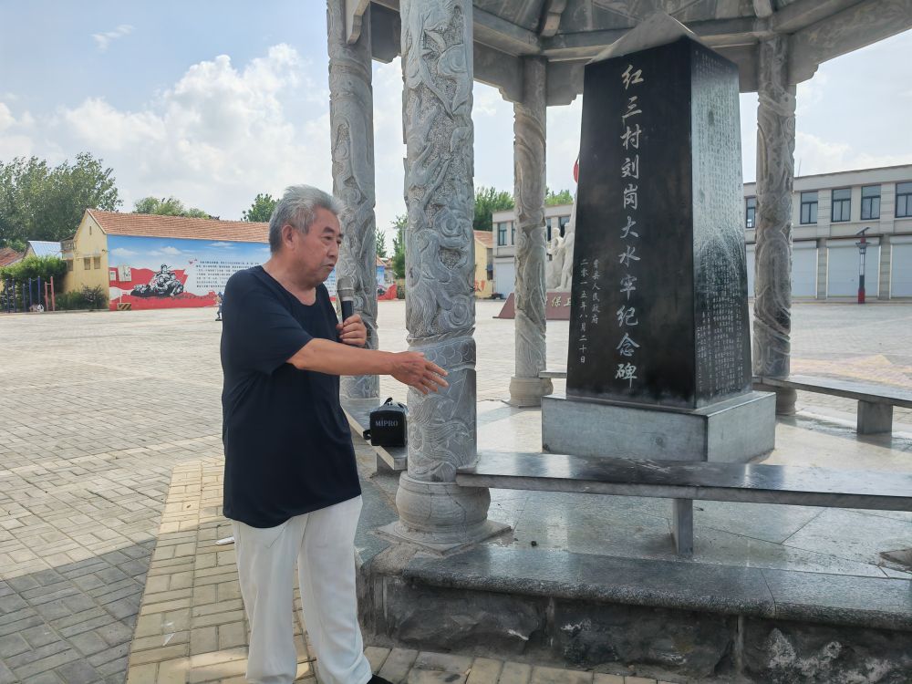 “1943年,日軍突襲劉崗村,嚴(yán)刑逼迫村民說出八路軍的秘密。眼看村民一個(gè)個(gè)被殺,冀魯豫邊區(qū)八路軍戰(zhàn)士秦興體站了出來,向侵略者高聲反抗,義無反顧獻(xiàn)出了生命……”在菏澤市曹縣韓集鎮(zhèn)劉崗村,74歲的義務(wù)講解員劉全義站在劉崗大水牢紀(jì)念碑前,動(dòng)情講述著“紅三村”的抗日故事。