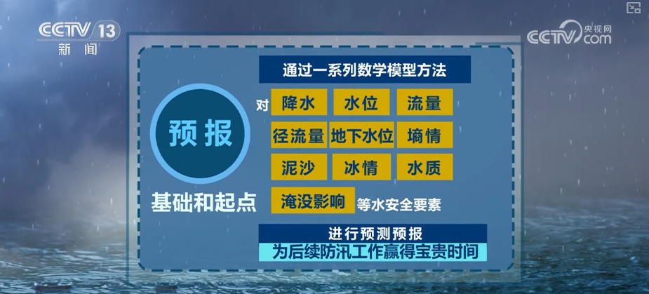 預報是基礎(chǔ)和起點,通過一系列數(shù)學模型方法,對降水、水位、流量、徑流量、地下水位、墑情、泥沙、冰情、水質(zhì)、淹沒影響等水安全要素進行預測預報,為后續(xù)防汛工作贏得寶貴時間。