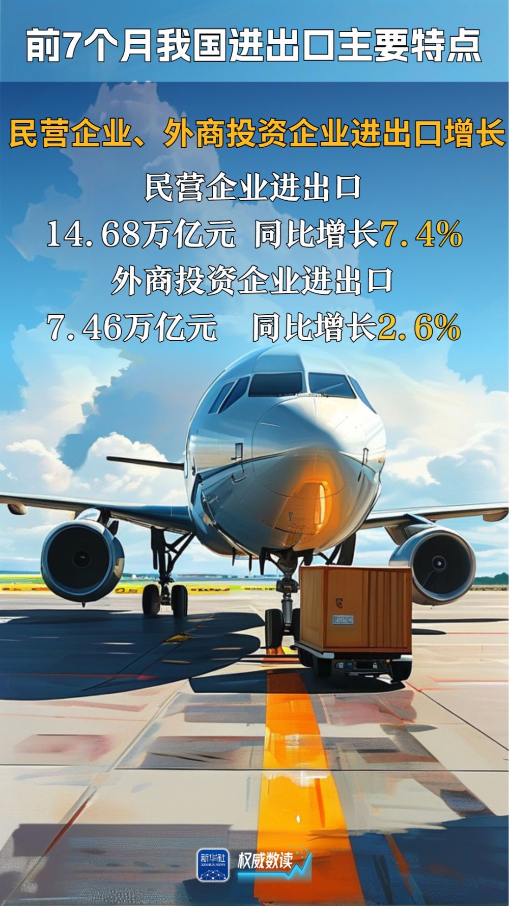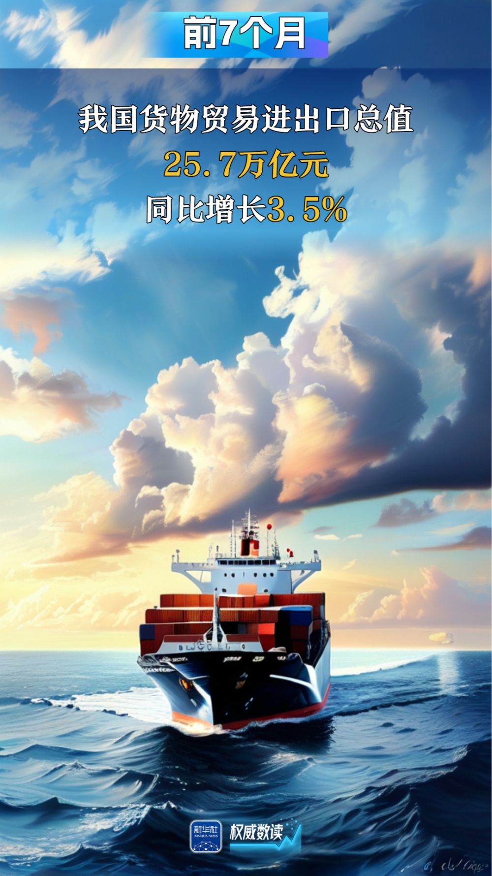 海關(guān)總署7日發(fā)布數(shù)據(jù)顯示,今年前7個(gè)月,我國貨物貿(mào)易進(jìn)出口總值25.7萬億元人民幣,同比增長3.5%。面對(duì)復(fù)雜外部環(huán)境,我國外貿(mào)運(yùn)行保持向上向好勢(shì)頭,經(jīng)濟(jì)運(yùn)行穩(wěn)中有進(jìn)。