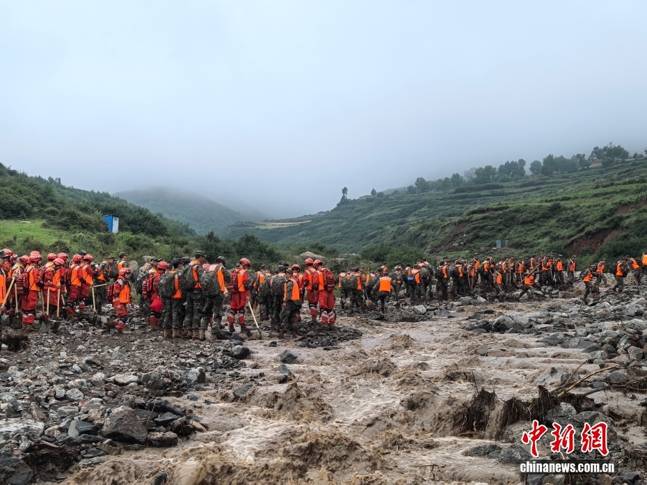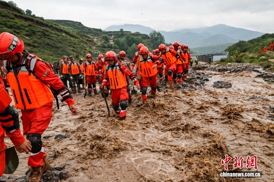 8月8日,武警甘肅總隊機(jī)動支隊官兵在甘肅省蘭州市榆中縣馬坡鄉(xiāng)舊莊溝村展開救援。劉昆 攝