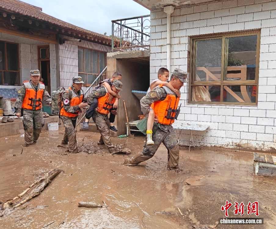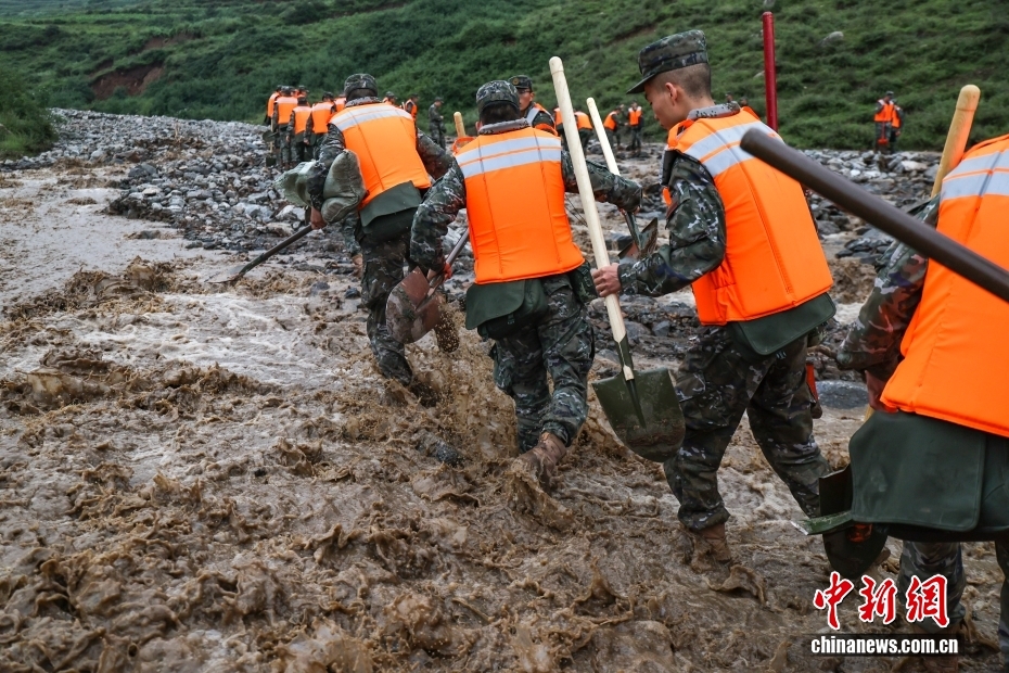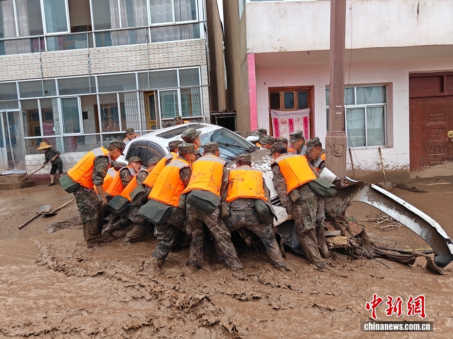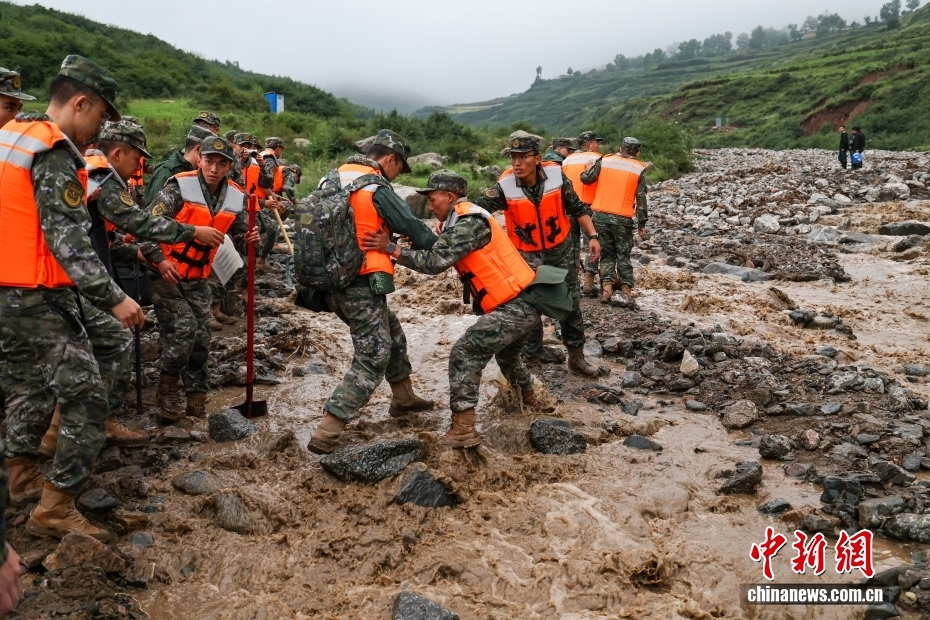截至8日晚,武警甘肅總隊投入396名兵力開展道路清淤、人員搜救、搬運物資等救援行動,共轉(zhuǎn)移群眾171人、搜救被困群眾5人、救治受傷群眾2人、清理危房6處、轉(zhuǎn)移受損車輛12輛,累計清理淤泥、山石700余方,搜索河道6公里、搶通道路2300米。圖為8月8日,武警甘肅總隊機(jī)動支隊官兵挺進(jìn)災(zāi)區(qū)甘肅省蘭州市榆中縣馬坡鄉(xiāng)舊莊溝村展開救援。劉昆 攝