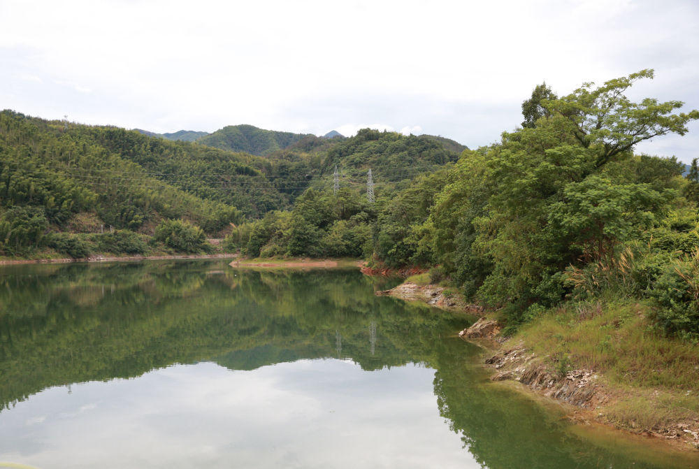 這是陳漢鄉(xiāng)的釣魚臺(tái)水庫,水庫中央樹林處為“陳漢溝會(huì)師”舊址(7月22日攝)。新華社記者 肖磊濤 攝