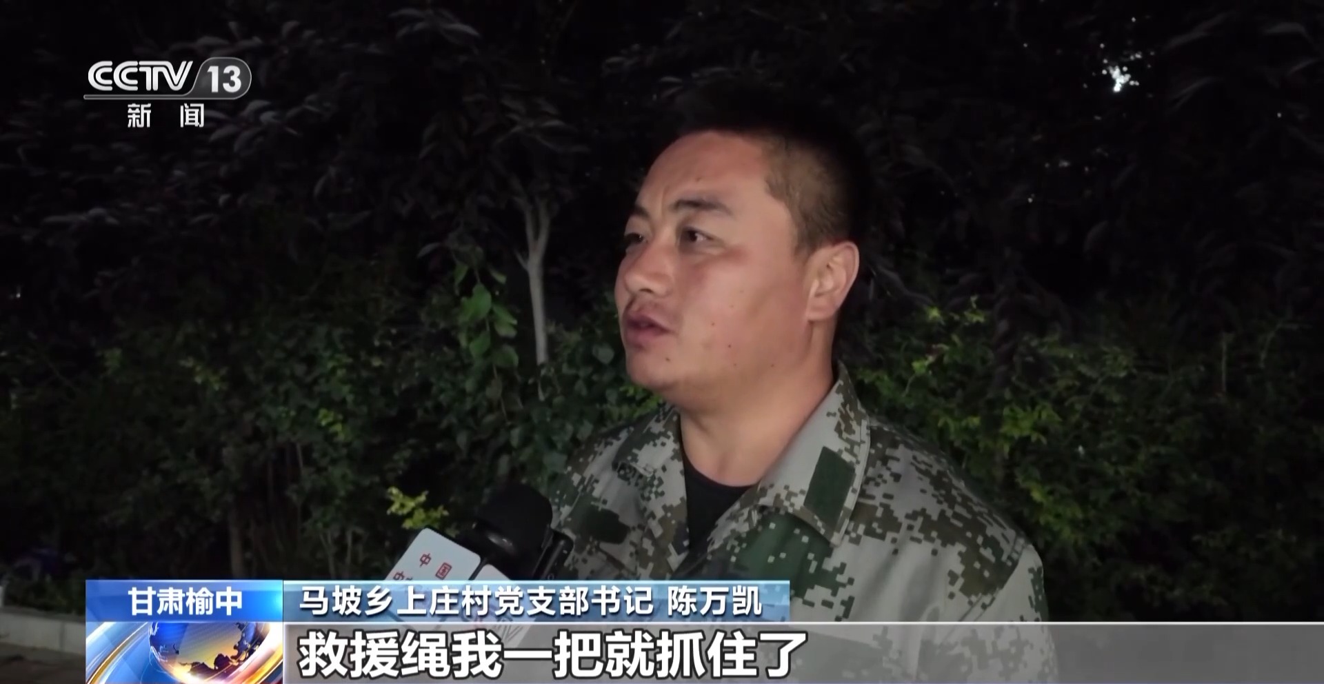 馬坡鄉(xiāng)上莊村黨支部書(shū)記 陳萬(wàn)凱:救援人員就一下扔過(guò)來(lái)一根繩子,救援繩我一把就抓住了,抓住以后我就往前走了有兩步就有一棵樹(shù),這么粗,就抱住了。抱住樹(shù)之后,它那個(gè)水就從我身上猛灌,那會(huì)突然感覺(jué)就沒(méi)勁了,往樹(shù)上爬也爬不上去。沖了有兩分多鐘、三分鐘水突然就又小了,然后我趕緊爬上去。到第二天早上我去看爬過(guò)的那棵樹(shù),還有那墻,那場(chǎng)景全都找不見(jiàn)在哪了。