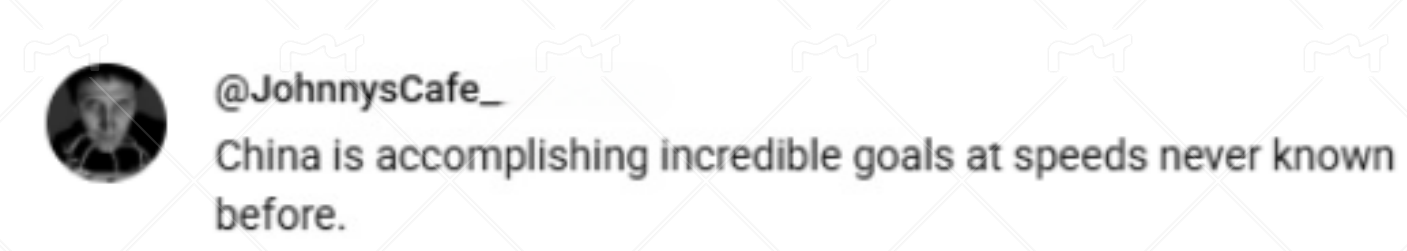 網(wǎng)友@JohnnysCafe_表示,“中國正在以前所未有的速度實現(xiàn)令人難以置信的目標?!?/p>