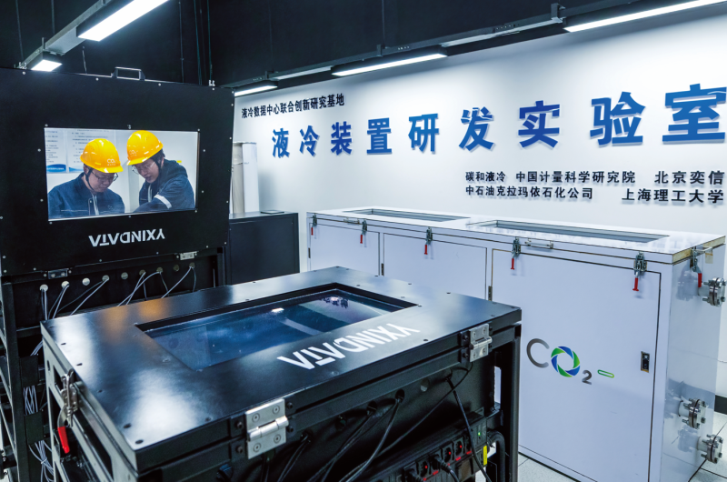 克拉瑪依云計算產(chǎn)業(yè)園克拉瑪依市碳和液冷數(shù)據(jù)中心,工程師正在進行工程試驗。閔勇 攝