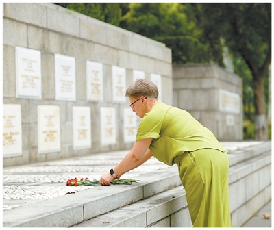 葉蓮娜在武漢蘇聯(lián)空軍志愿隊(duì)烈士墓祭奠外祖父舒斯特爾。