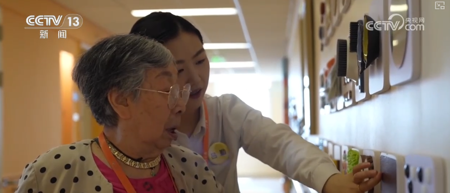 呂勤介紹,這面墻是多感官刺激撫觸類訓(xùn)練墻。通過一定頻次,規(guī)律去做一些感統(tǒng)訓(xùn)練的模式,減緩老人感官退化的速度。