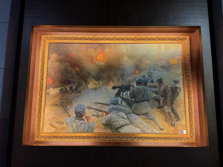 徐州運(yùn)河支隊(duì)抗日紀(jì)念館內(nèi)有一幅油畫,生動(dòng)再現(xiàn)了夜襲賈汪的場景。