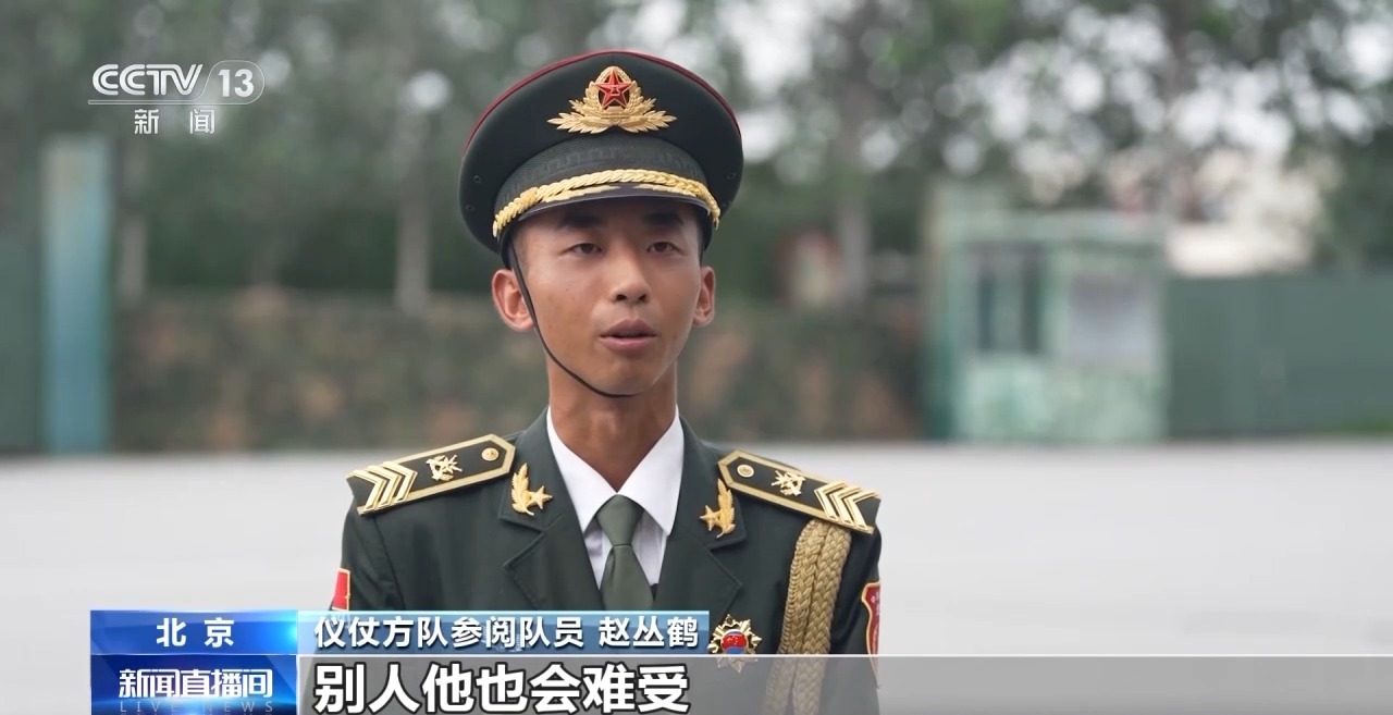 儀仗方隊(duì)受閱隊(duì)員 趙叢鶴:其實(shí)當(dāng)你難受的時候,別人他也會難受,像這個時候我們比拼的就不是身體素質(zhì)了,我們比拼的是意志力。