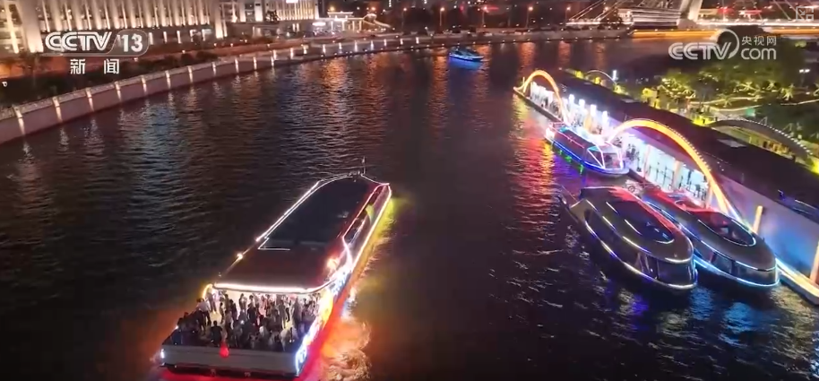 除了博物館內(nèi)的精品文物給大家?guī)砹宋幕⒀?,入夜后的海河璀璨絢麗,海河之夜美景再升級(jí)。沿線建筑、橋梁及碼頭的燈光景觀全面提升,飽覽海河兩岸美景的海河游船也打造了全新體驗(yàn)。