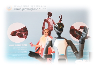 7月11日,嘉賓在2025上合組織數(shù)字經(jīng)濟論壇上體驗操控人形機器人。
