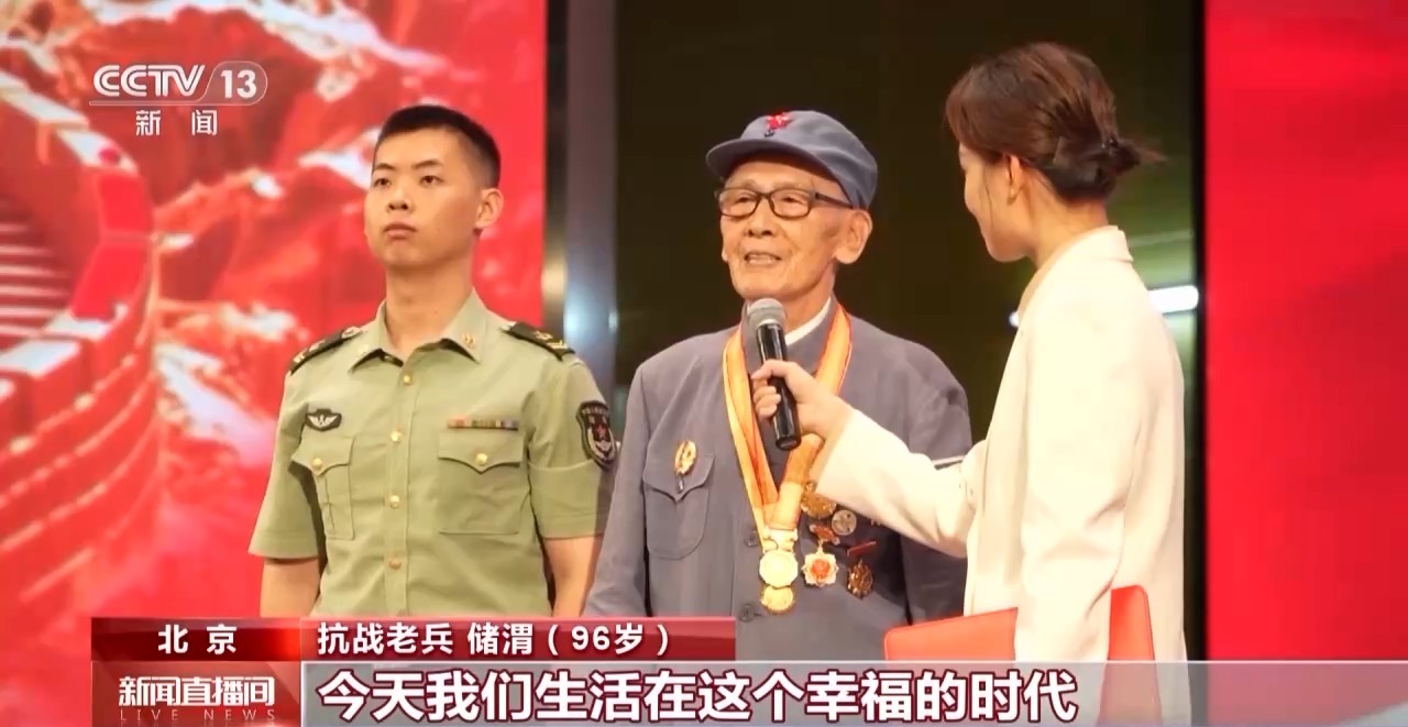 抗戰(zhàn)老兵 儲(chǔ)渭(96歲)我當(dāng)兵的時(shí)候不到15歲,現(xiàn)在老戰(zhàn)友已經(jīng)不太多了。經(jīng)歷了14年的抗日戰(zhàn)爭(zhēng),今天我們生活在幸福的時(shí)代,這是黨的關(guān)懷,這是我們不能忘記的。