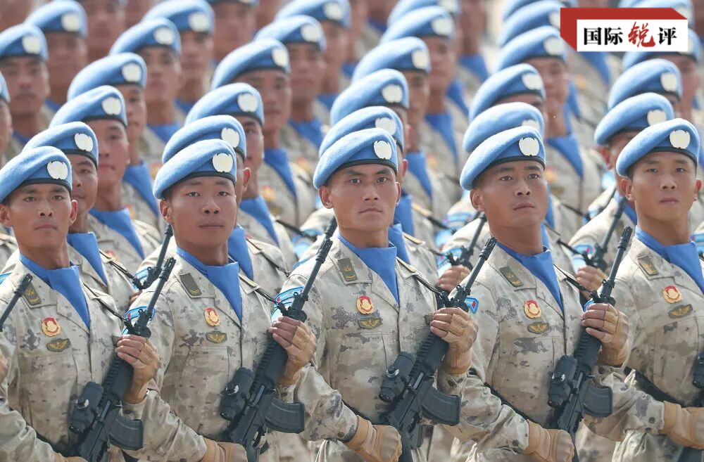在這次受閱的45個方(梯)隊中,有一支頭戴藍(lán)色貝雷帽的維和部隊方隊。參加聯(lián)合國維和行動35年來,“中國藍(lán)盔”不懼艱險,用行動譜寫大國擔(dān)當(dāng)。從前往亞丁灣、索馬里海域執(zhí)行護航任務(wù),到“和平方舟”號醫(yī)院船進行援外醫(yī)療,中國人民解放軍為維護世界和平作出重要貢獻(xiàn)。
