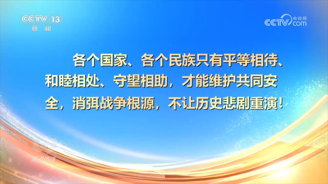楊鳳城:“總書記在這次紀念抗戰(zhàn)勝利80周年的講話,還有過去的講話,都特別強調(diào)我們銘記歷史,緬懷先烈,不是為了延續(xù)仇恨,是為了珍愛和平,聚焦發(fā)展。中國共產(chǎn)黨不僅是這么說的,也是這么做的。我們提出了全人類共同價值,提出了構(gòu)建人類命運共同體,實踐‘一帶一路’,說明什么?說明中國共產(chǎn)黨從中國人民,從自身的經(jīng)歷中,深深體會到和平的可貴,深深認識到發(fā)展的重要。”