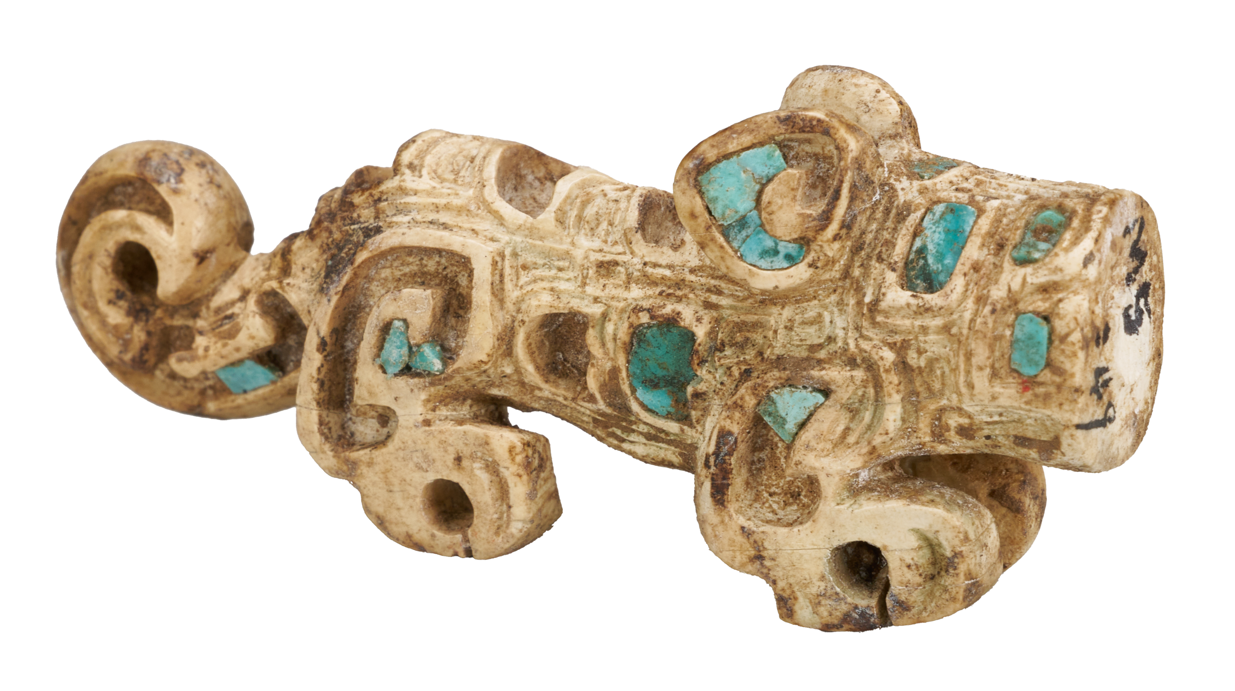 骨雕·嵌綠松石骨虎