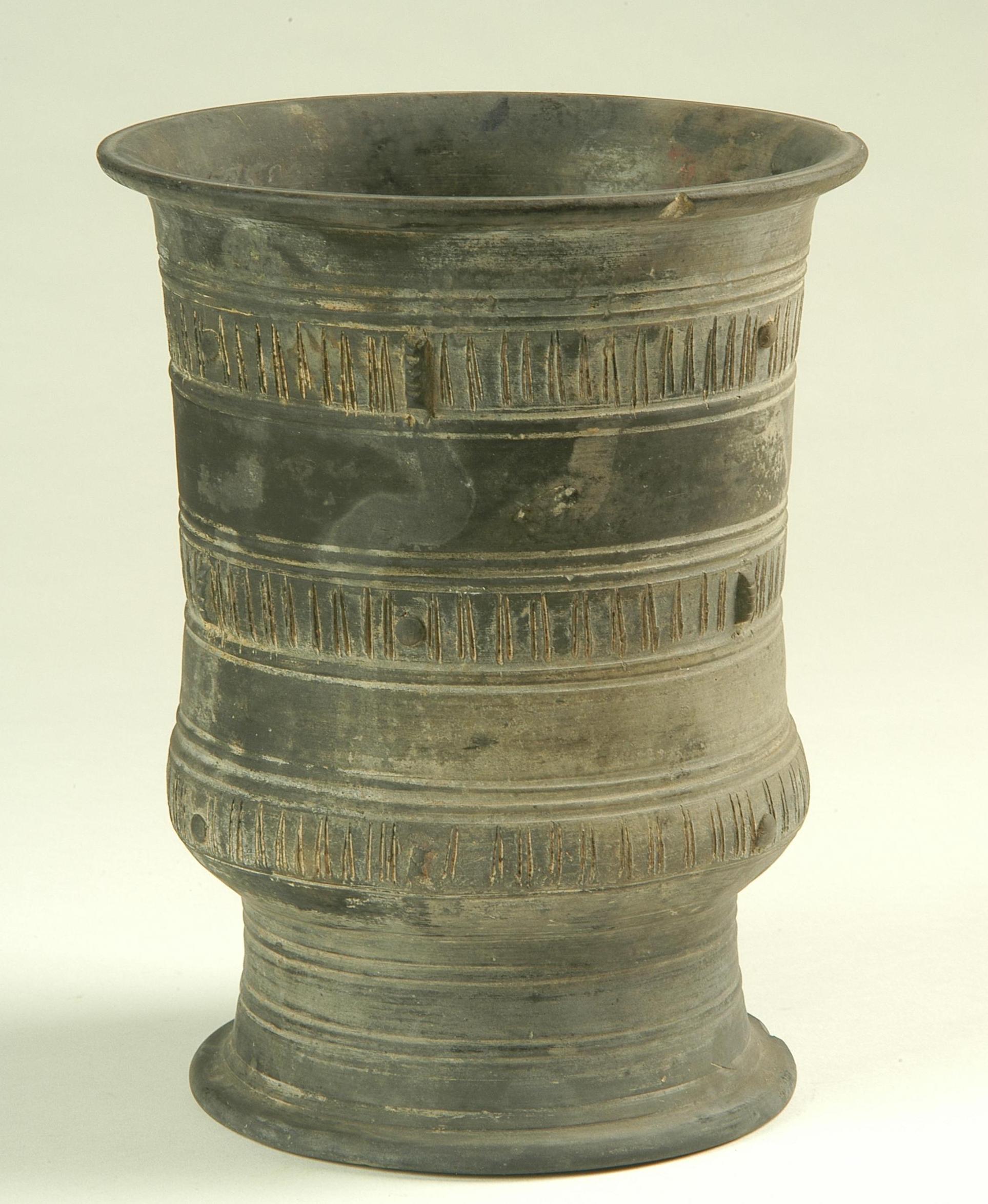 大敞口、直筒腹、高圈足