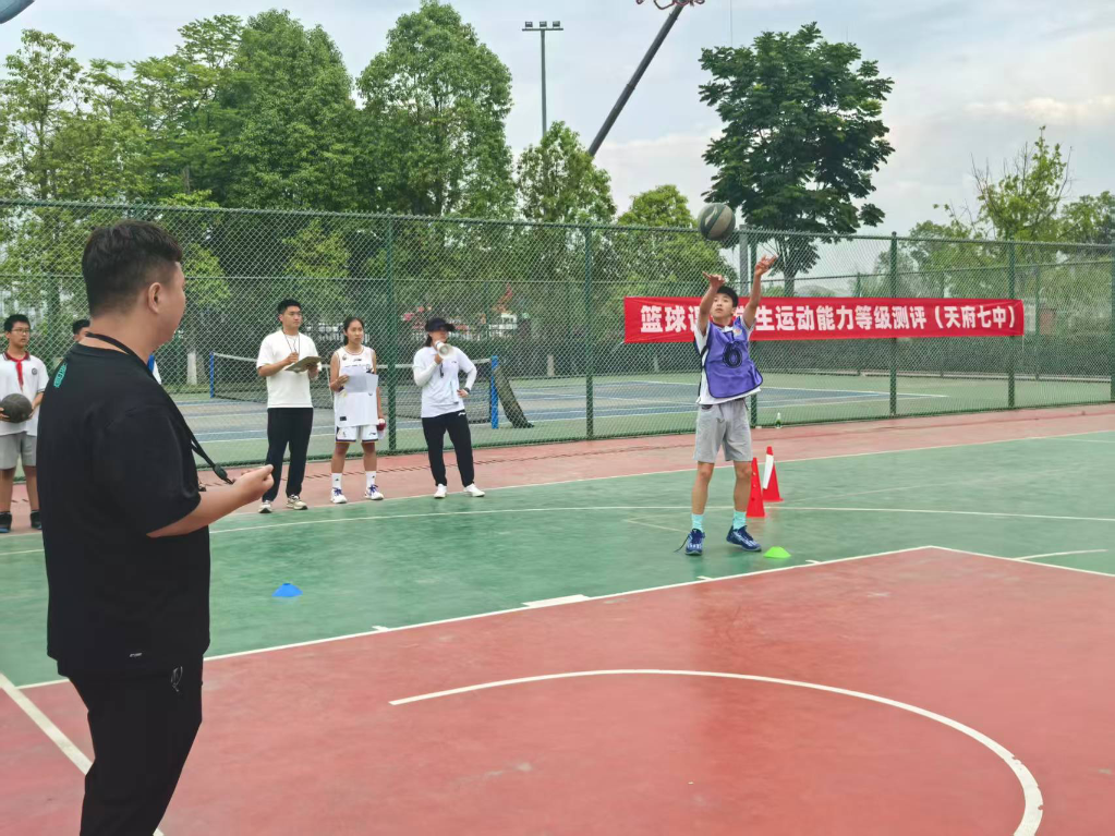 走進(jìn)成都天府第七中學(xué)體育館,墻上張貼著足球、籃球、排球等項(xiàng)目的課程運(yùn)動(dòng)能力等級(jí)標(biāo)準(zhǔn),十分醒目。學(xué)生們正按照標(biāo)準(zhǔn)要求進(jìn)行籃球練習(xí),他們一邊觀察墻上的動(dòng)作示意圖,一邊調(diào)整手型和力度,控制籃球的反彈高度和節(jié)奏。