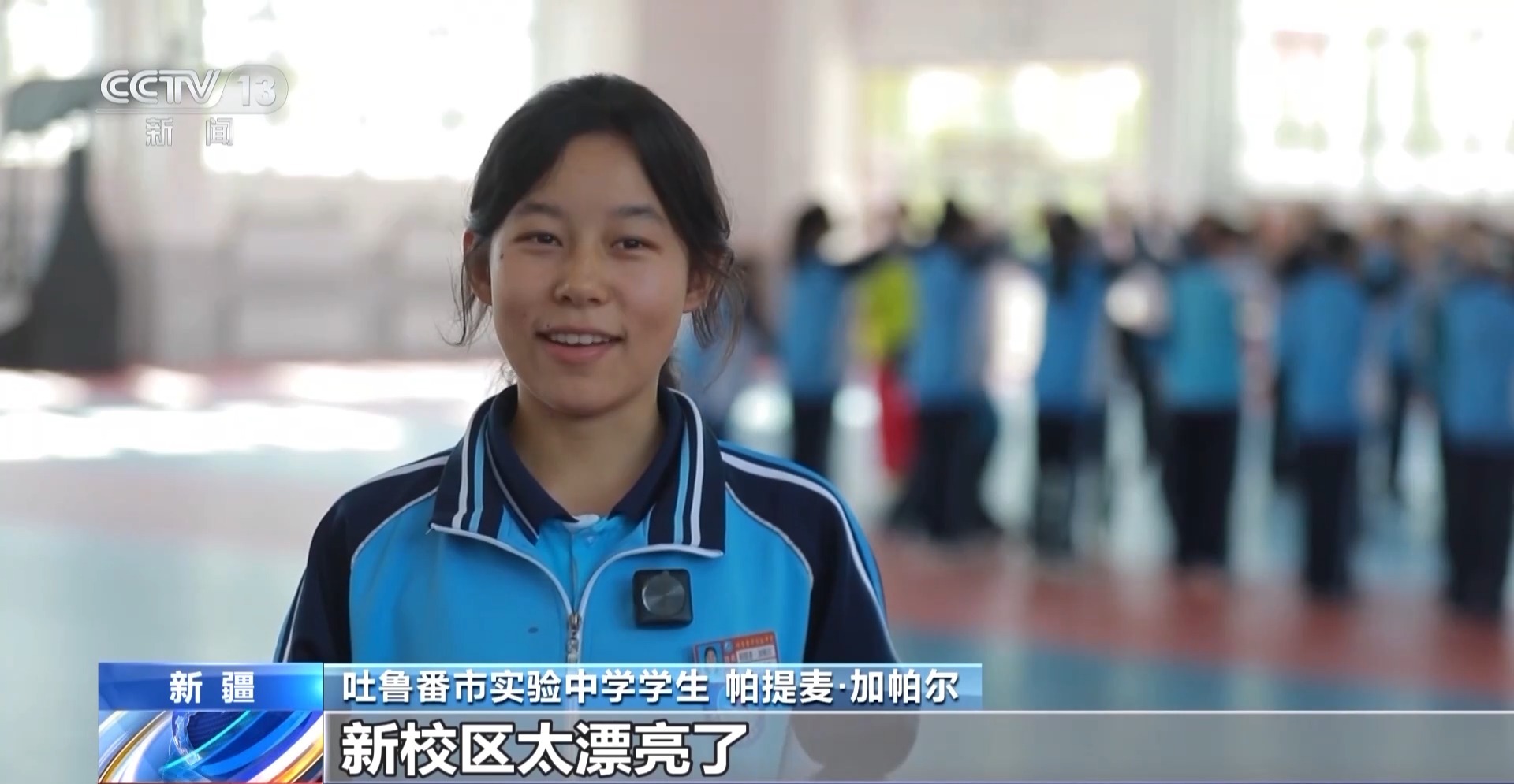 吐魯番市實(shí)驗(yàn)中學(xué)學(xué)生 帕提麥·加帕爾:新校區(qū)太漂亮了,在這里我現(xiàn)在學(xué)習(xí)勁頭兒十足,已經(jīng)愛上這里的生活了。