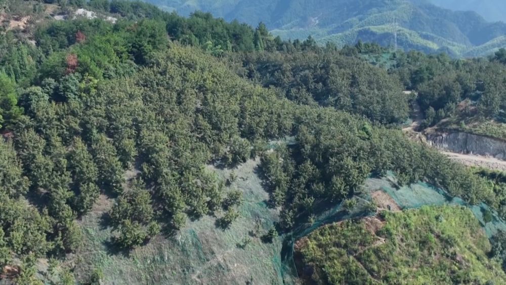 近年來,臨安區(qū)大力推廣張網(wǎng)采收,在昌化鎮(zhèn)白牛村西谷坪經(jīng)濟林林場,一張張綠色的網(wǎng)像地毯一樣鋪滿山頭。