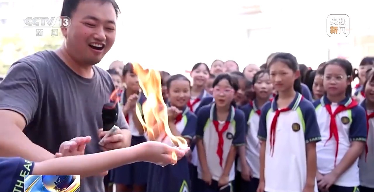 在“科技魔法秀體驗”區(qū),“火焰掌”表演讓同學(xué)們親身感受化學(xué)反應(yīng)的奇妙。這個看似“魔法”的現(xiàn)象,實則蘊含著燃燒條件、導(dǎo)熱材料等科學(xué)原理。