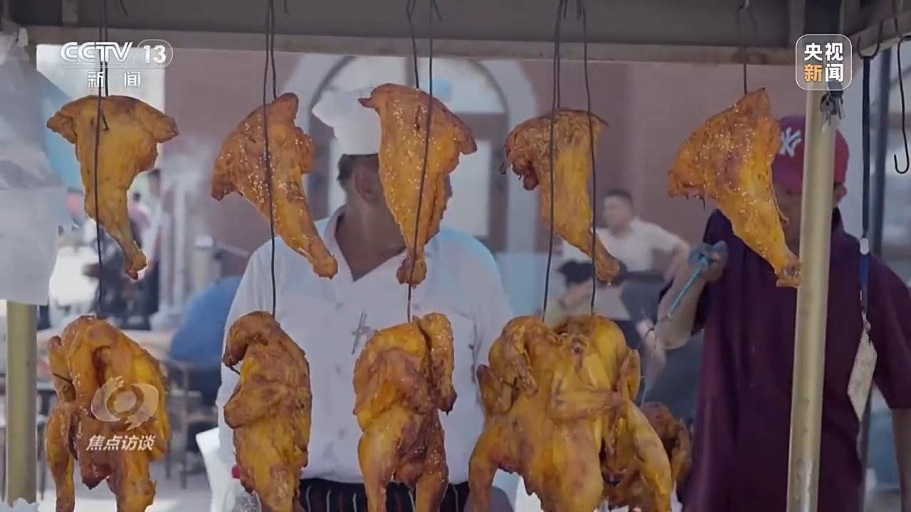 在新疆尉犁縣達(dá)西村,一年一度的羅布人民俗燒烤節(jié)上,各民族的村民用烤肉、烤魚等特色美食,招待從全國各地來的客人。