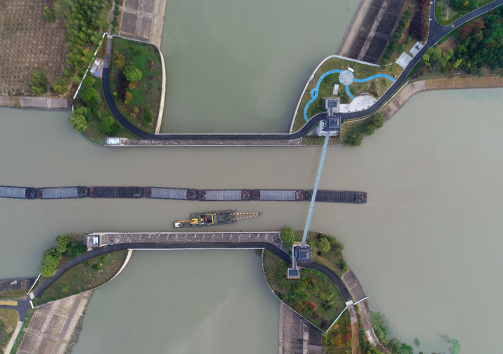 作為淮河入海水道二期工程的核心節(jié)點(diǎn),淮安水利樞紐大運(yùn)河水上立交建成便是“亞洲最大水立交”。京杭大運(yùn)河、蘇北灌溉總渠、淮河入海水道,三條載入史冊(cè)的人工水道在此交匯,“兩橫一縱”的格局間,藏著建設(shè)者們最棘手的難題?!岸诠こ桃o鄰布置,水系又密、水頭還高。”王洪玉抬手比劃著樞紐布局,“我們先做好基坑防滲工作,再通過開挖臨時(shí)導(dǎo)航明渠來保障運(yùn)河航運(yùn),工程在緊鑼密鼓地推進(jìn)?!?/p>