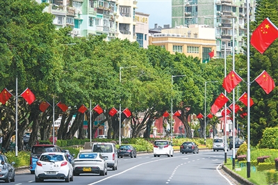 為熱烈慶祝中華人民共和國(guó)成立76周年,香港和澳門街頭裝扮一新,處處洋溢著喜慶的節(jié)日氣氛。五星紅旗與港澳區(qū)旗迎風(fēng)飄揚(yáng),祝福標(biāo)語(yǔ)和慶祝海報(bào)在街頭巷尾隨處可見。港澳特區(qū)政府與社會(huì)各界攜手推出了一系列豐富多彩的慶?;顒?dòng)和優(yōu)惠措施。