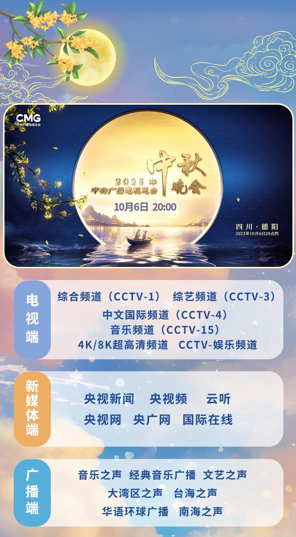 月照古今,共敘團圓。《中央廣播電視總臺2025年中秋晚會》主舞臺選址四川德陽玄珠湖,以蜀道、明月、山水營造“月從蜀道升,人向鏡中圓”的唯美意境?!渡皆聺M》《是吾鄉(xiāng)》《一輪秋》三個篇章,創(chuàng)新視聽語言呈現(xiàn)三星堆的神秘古韻、智能制造的硬核力量、非遺樂器的悠遠回響,為全球受眾奉獻一場巴蜀大地文化與中秋團圓意蘊交織相融的“團圓盛宴”。央視新聞、央視頻推出“秋晚探班”相關(guān)產(chǎn)品,帶你“打卡”錄制現(xiàn)場,“解鎖”臺前幕后。