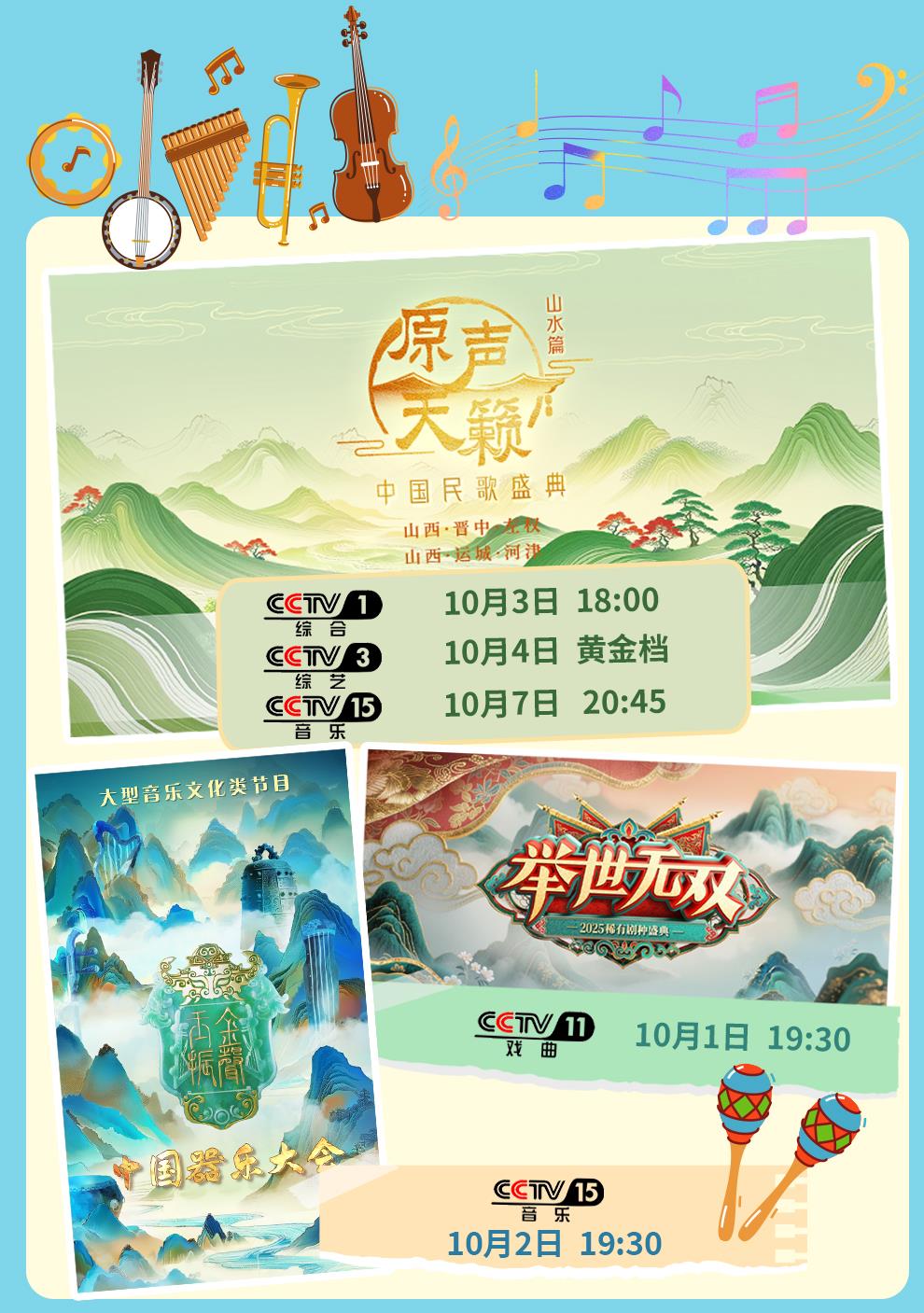 文藝節(jié)目,出新出彩!輕體量小鎮(zhèn)音樂會、稻田音樂會、河灘音樂會,《原聲天籟-中國民歌盛典》用民歌描繪山水間幸福畫卷。《金聲玉振——中國器樂大會》將賈湖骨笛、箜篌等古樂器與當代編曲結(jié)合,奇妙組合帶來全新聽覺體驗。《舉世無雙 2025稀有劇種盛典》匯集雁北耍孩兒、湖劇、阿宮腔等三十余個稀有劇種,盡展中華戲曲百花園獨特風采。