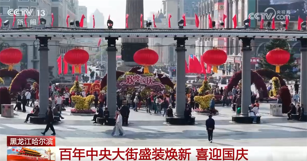 國慶節(jié)來臨,黑龍江哈爾濱中央大街披上“中國紅”盛裝,兩千余面國旗點綴百年老街,節(jié)日氛圍濃郁。從主街入口一直延伸至防洪紀念塔,紅色浪潮沿街道鋪展。
