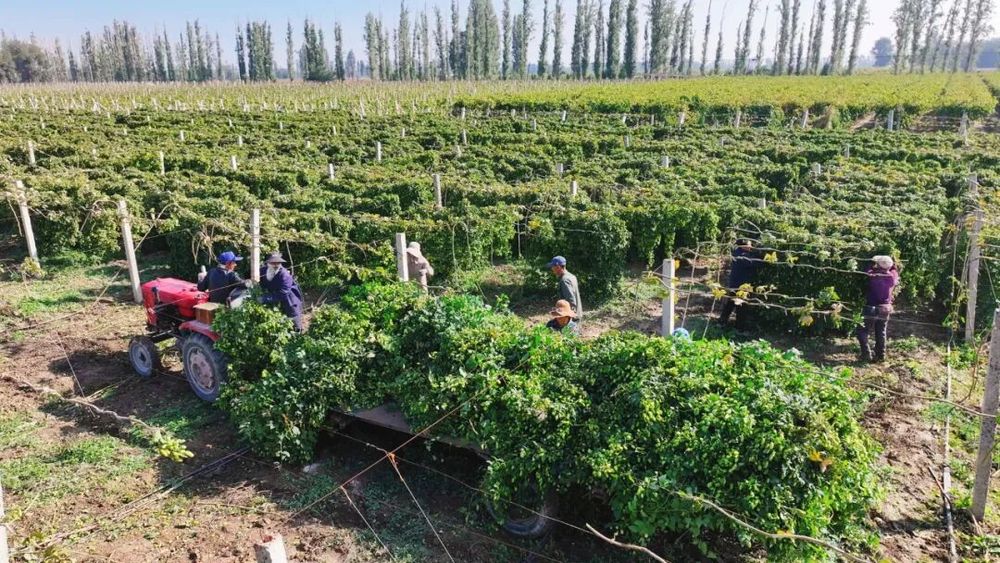 142團(tuán)種植的6000畝啤酒花喜獲豐收 (陸永紅 攝)
