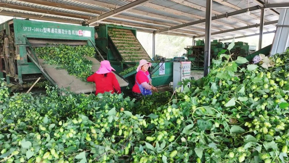 金秋時節(jié),新疆生產(chǎn)建設(shè)兵團(tuán)第八師石河子市142團(tuán)種植的6000畝啤酒花喜獲豐收,鮮花畝產(chǎn)量近1000公斤,烘干后干花達(dá)250公斤,每畝純收益約1500元。