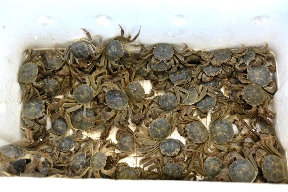 據(jù)介紹,遼寧毛蟹肉質(zhì)鮮嫩細(xì)膩,喜低溫環(huán)境,夏季生長較慢,至7月僅30克-40克,進(jìn)入秋季后迅速增重至150克。判斷螃蟹是否成熟,可觀察其腿部:腿長且硬實即表示已長成。