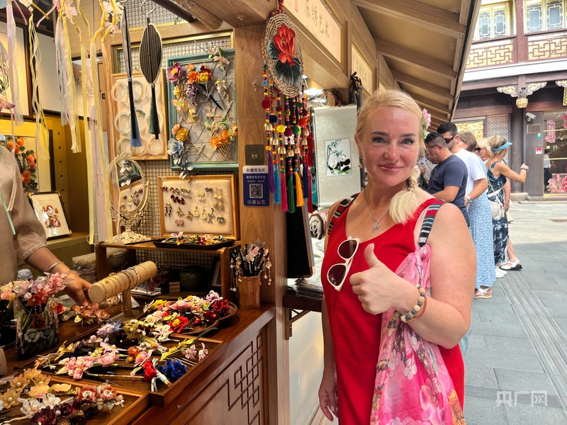 除了時尚消費的多元選擇,上海的特色消費更從“傳統(tǒng)好物”延伸至“科技潮品”,在滿足不同需求的同時,也向境外游客傳遞著中國文化的溫度與現(xiàn)代生活的便利?!拔屹I了很多中國茶葉,買了玉手串。我還買了各種絲綢制品,有漂亮的裙子、絲巾,還有一條可以和媽媽一起使用的絲綢毯子。”俄羅斯游客艾琳娜的行李箱里,裝滿了頗具中國風(fēng)的優(yōu)質(zhì)商品,這些都是她眼中“最有中國味道的伴手禮”。