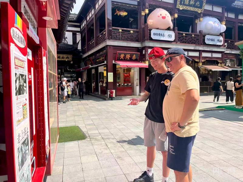 正在體驗復(fù)古拍報機的俄羅斯父子 (央廣網(wǎng)記者 沈梅攝)