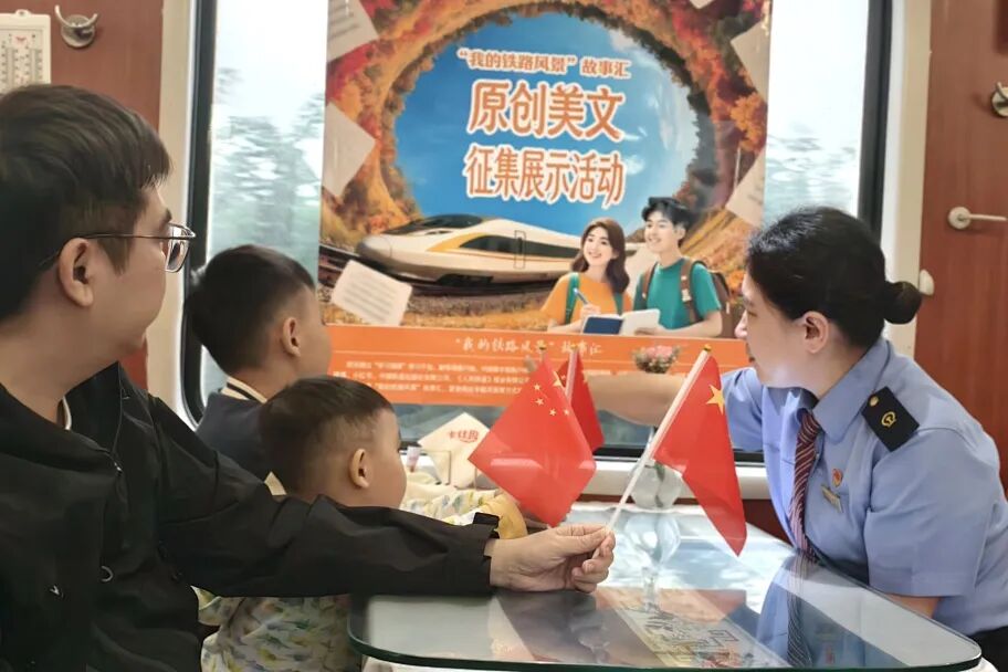 “能在列車上參加‘我的鐵路風(fēng)景’活動,我的心情非常激動。感謝鐵路部門的精心安排,讓我擁有了一段難忘的旅途?!鼻巴鶟h口的旅客劉女士高興地說。
