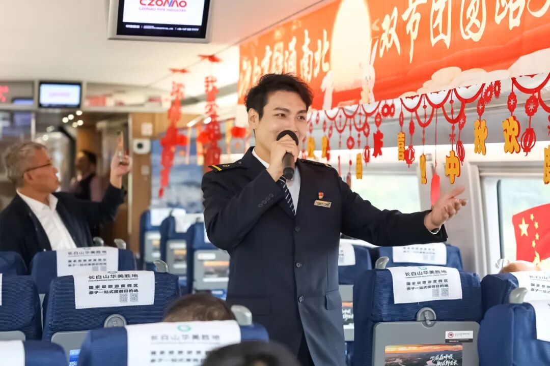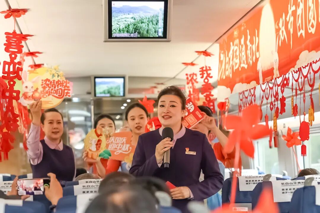 沈佳高鐵沈白段開通運(yùn)營后,迎來第一個(gè)國慶中秋假期。長春客運(yùn)段在長春至青島北的G3565次列車上舉辦“‘我的鐵路風(fēng)景’——沈白高鐵通南北 雙節(jié)團(tuán)圓路更捷”列車聯(lián)歡活動。
