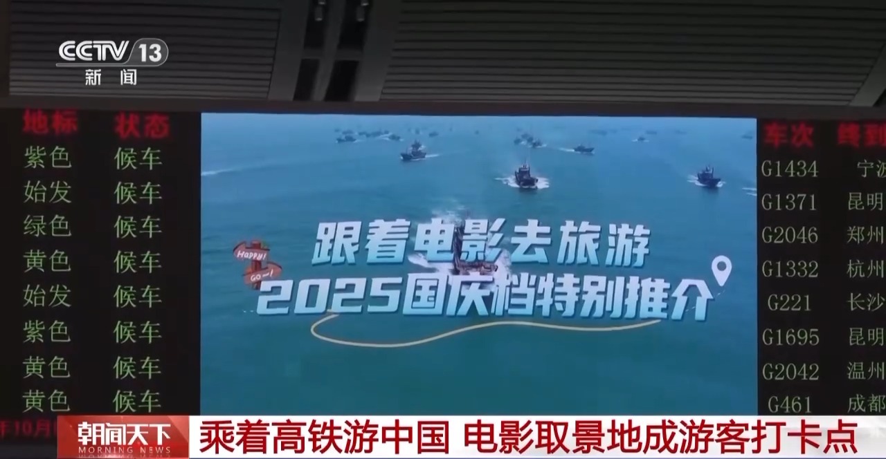 據(jù)了解,為持續(xù)推動“電影+”業(yè)態(tài)創(chuàng)新,國慶期間,在全國3000多個鐵路客運車站、4200多組動車組列車的車廂電視上,集中播放《跟著電影去旅游》等影旅主題推介視頻,不僅展示熱門電影取景地,還聯(lián)動多條鐵路旅游專線提供出行指引,邀請旅客體驗“鐵路+電影”的出行新方式。