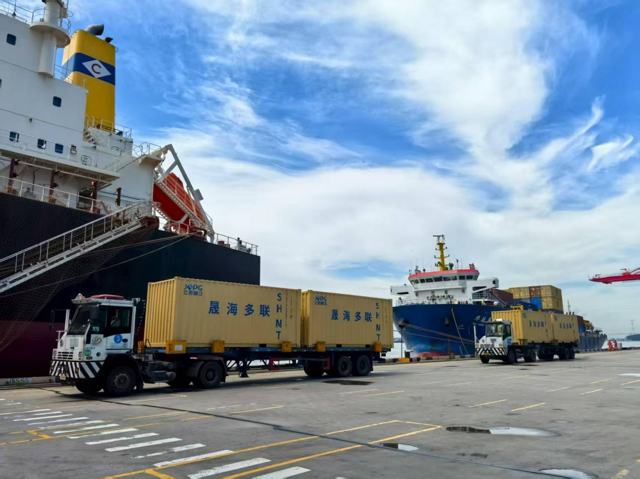 “傳統(tǒng)車(chē)皮運(yùn)輸需多次倒裝,損耗率高、成本大。我們創(chuàng)新采用35噸敞頂箱替代車(chē)皮,鐵路直發(fā)龍?zhí)陡酆笸ㄟ^(guò)專(zhuān)用吊具直接拆箱裝船,全程貨物不落地、零損耗,每年節(jié)省物流成本近2000萬(wàn)元?!标珊9究偨?jīng)理管俊俊向記者介紹。
