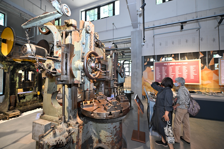 2025年5月18日,游客在天津機(jī)床工業(yè)博物館內(nèi)參觀機(jī)床設(shè)備。新華社記者 孫凡越 攝