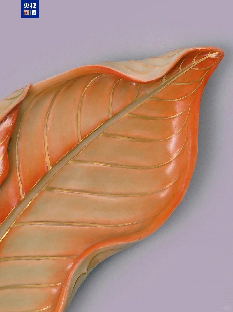 器面的葉脈描畫(huà)清晰并以描金裝飾