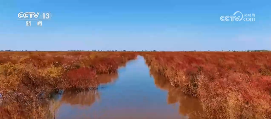 金秋時節(jié),在江蘇連云港臨洪河口,沿海灘涂濕地披上了多彩的秋裝。連片的堿蓬草在秋風(fēng)中次第變紅,層層疊疊。陽光灑下,一株株堿蓬草晶瑩閃亮,紅得耀眼。微風(fēng)拂過,枝葉搖曳生姿,在碧海藍天的映襯下,美不勝收。
