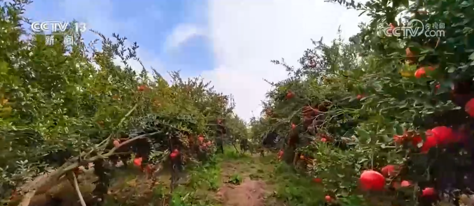 眼下,新疆伽師縣的2.4萬(wàn)畝石榴迎來(lái)豐收季,連片果園里,飽滿的石榴掛滿枝頭,仿佛一串串的“火紅燈籠”。