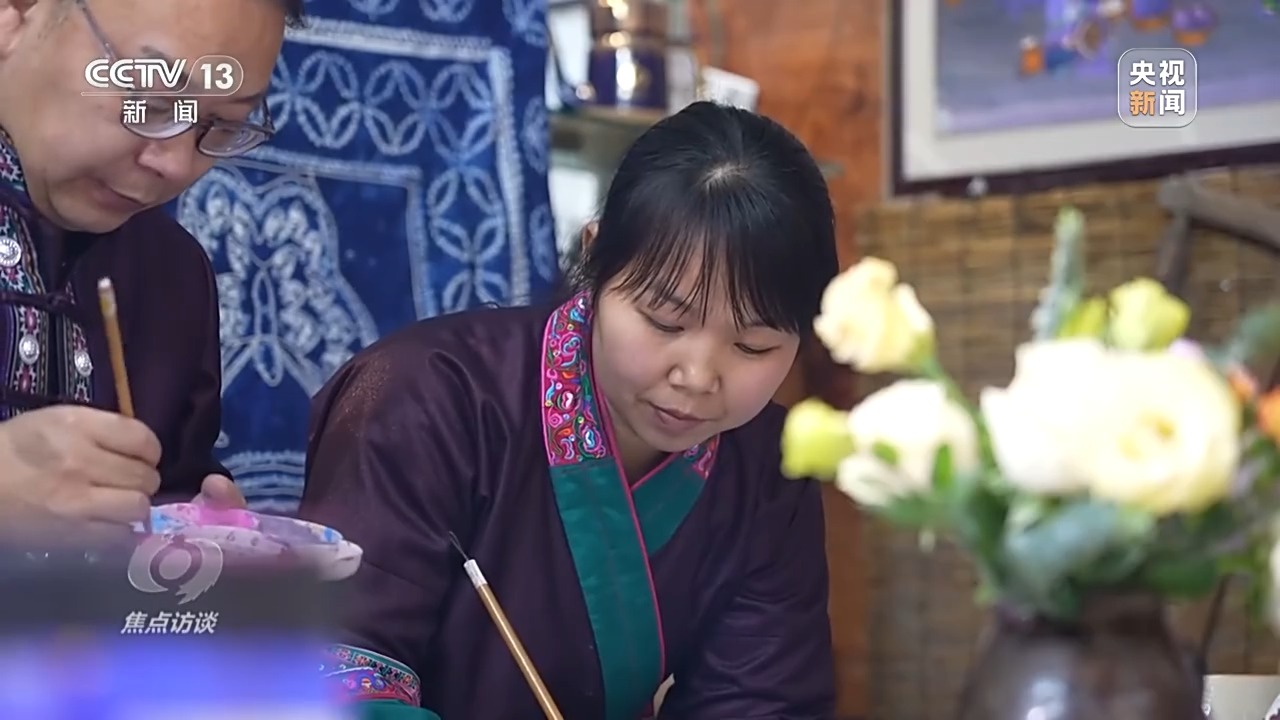 陳美美:我還記得我女兒一直問我,媽媽天上是什么?我說是飛機(jī)。你努力讀書,我以后要跟著你一起去坐飛機(jī)。我沒想到我女兒還沒長(zhǎng)大,我就因?yàn)楫嫯嬜w機(jī)去了北京。真的畫畫改變了我,也改變了我們家鄉(xiāng)。