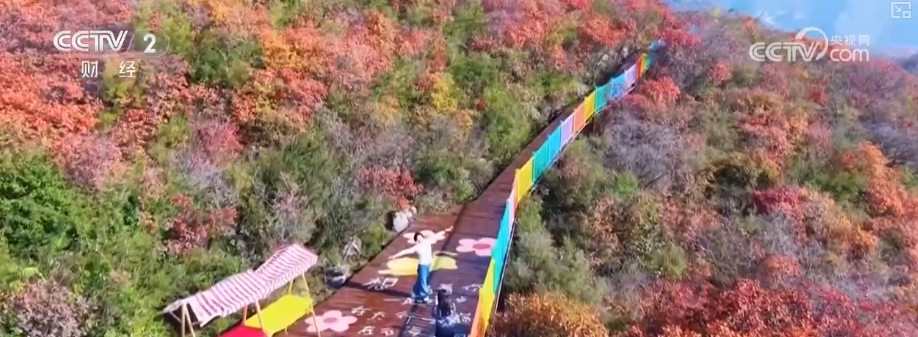 這里新落成的五彩步道全長1300米,沿山脊蜿蜒鋪展,如一條絢爛彩帶鑲嵌于山間,每百米便有一處景致,步移景異。游客既能賞紅葉爛漫、覽太行雄姿,亦可于登高望遠(yuǎn)處邂逅一場秋日視覺盛宴。