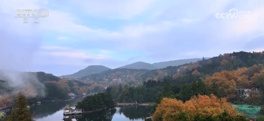 11月的廬山,秋色漸濃,風(fēng)景如畫。高空俯瞰,如琴湖畔,梧桐葉黃、雞爪槭紅。山霧隨風(fēng)而起,半遮半掩,色彩斑斕的秋天景色若隱若現(xiàn),倒映在湖中如夢如幻。眾多游客紛至沓來,登山賞景、打卡留念。