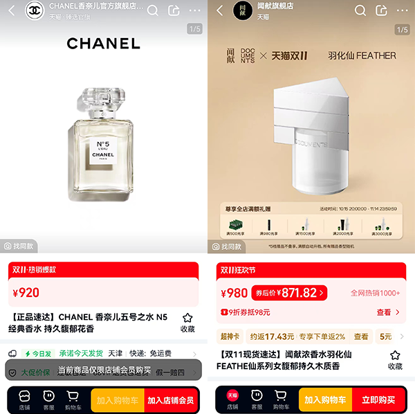 個(gè)別國貨香水價(jià)格高于國際品牌(圖片來源:天貓)