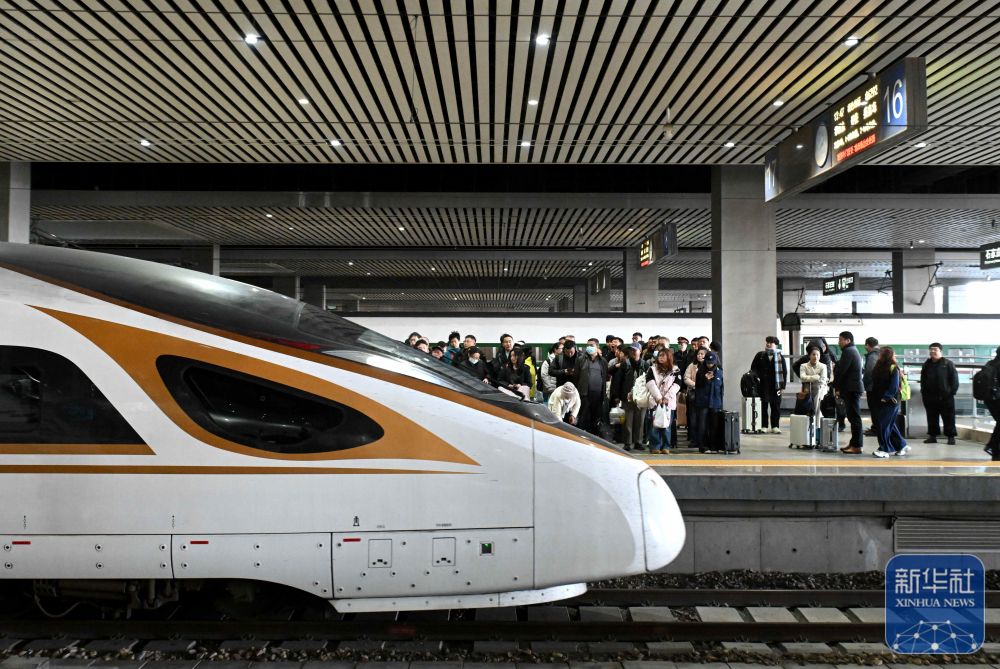 11月16日,旅客在位于天津市濱海新區(qū)的塘沽站準備登車。新華社發(fā)(杜鵬輝攝)