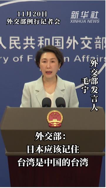 外交部發(fā)言人毛寧20日表示,日本侵略者在臺灣犯下罄竹難書的罪行,書寫了臺灣歷史上最黑暗的一頁。日本應(yīng)該記住,臺灣是中國的臺灣。臺灣是否有事,根本不是日本的事。