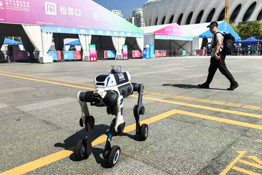 11月9日,機(jī)器人在第十五屆全國運(yùn)動會開幕式現(xiàn)場表演。